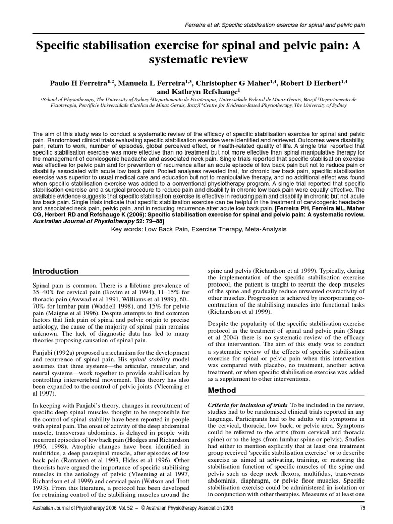 Pdf Specific Stabilisation Exercise For Spinal And Pelvic Pain A