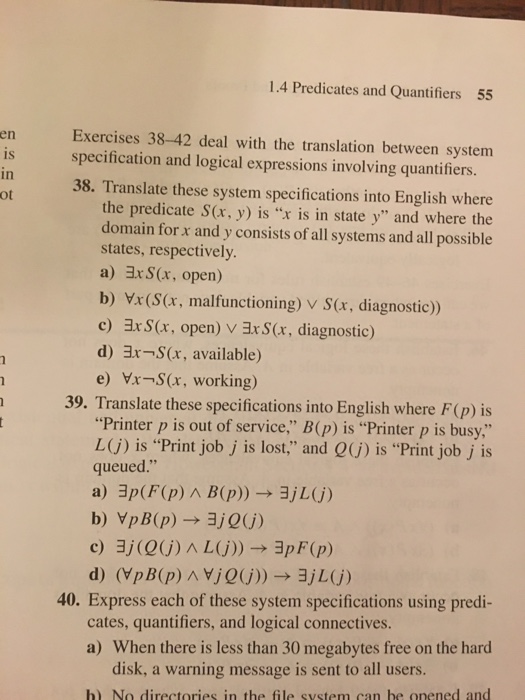 Solved 1 4 Predicates And Quantifiers 55 En Is In Ot Exer